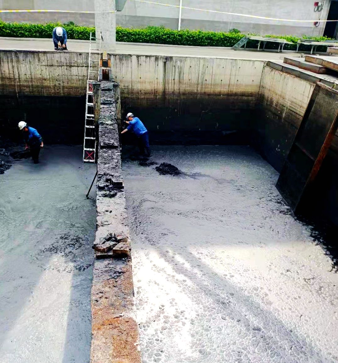 因循環(huán)水系統(tǒng)運(yùn)行時(shí)間較長(zhǎng),造成循環(huán)水池內(nèi)積存大量淤泥,清淤時(shí)只能一桶一桶往外清運(yùn),生產(chǎn)一班合理分工,兩人一組,一人在池內(nèi)清理另一人在池外提運(yùn),配合默契,不分你我。