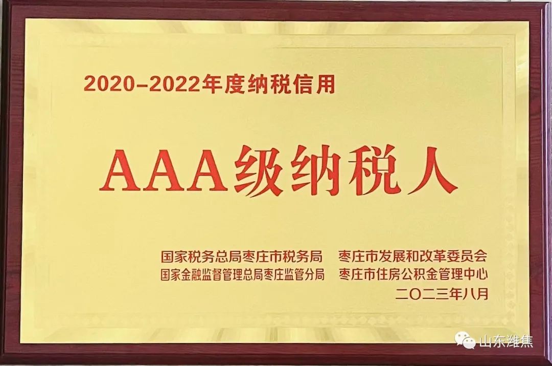 8月29日,國家稅務總局棗莊市稅務局、棗莊市發展和改革委員會、國家金融監督管理總局棗莊監管分局及棗莊市住房公積金管理中 心聯合表彰了2020-2022年度納稅信用AAA級企業,薛城能源公司獲評2020-2022年度納稅信用“AAA級納稅人”。榮譽的獲得,充分體現了公司稅務工作的制度化、規范化,為企業增信、評優、融資等工作奠定了良好基礎。